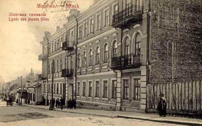 | Keywords: Жаночая гімназія, вул. Праабражэнская.jpg Вуліца П ааб ажэнская Валада скага і далей Інтэ нацыянальная Жаночая гімназія Паштоўка пачатку ХХ-га стагоддзя http //www oldmensk net/publ/vulicy/valadarskaga/vul_valadarskaga/39-1-0-24 century 20 PD-old Valadarskaha street Minsk |