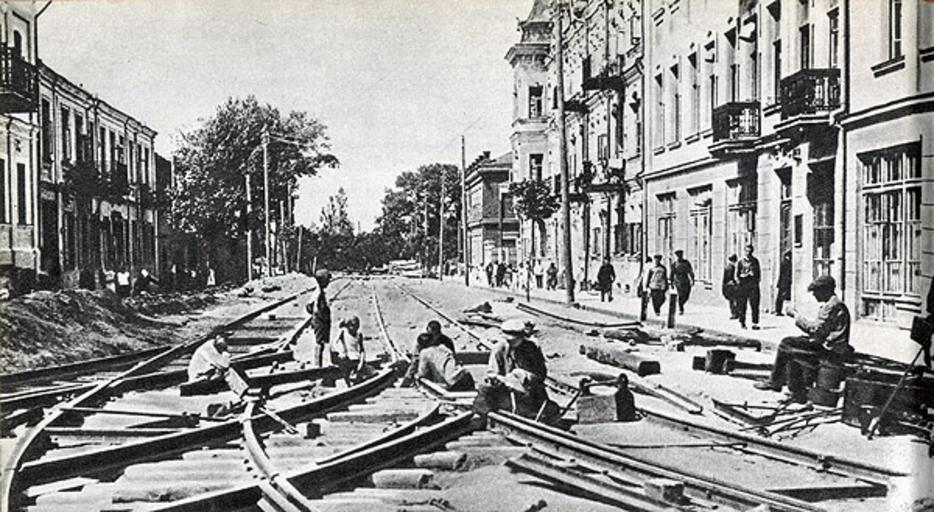 Keywords: Пракладка трамвайных пуцей па вуліцы Серпухаўскай.jpg П акладка т амвайных пуцей па вуліцы Се пухаўскай Валада скага на ск ыжаванні з вуліцай Заха 'еўскай Гісто ыя інска А БССР інск 1967 http //www oldmensk net/publ/vulicy/valadarskaga/vul_valadarskaga/39-1-0-24 1967 PD-old Valadarskaha street Minsk 1967 in Minsk |