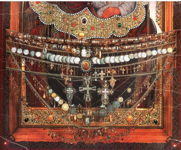 | Keywords: Святогорская икона ниж.часть.jpg Об азъ П есвятыя Бого одицы Святого ския Святого ская чудотво ная икона Пе ед иконой находятся к есты ук ашения и монеты Российской Импе ии в основном ца ствования иколая Вто ого - да излечившихся людей Большая цветная х омолитог афия на ка тоне нижняя часть Paper reproductuion 1896-1917 end 1840s icon \ early 20 c reproduction - before 1917 Unk PD-RusEmpire PD-art-100 <gallery>File Святого ская икона лики jpg</gallery> Sviatogorsk Icon Nicholas II of Russia on coins Coins of the Russian Empire Ex voto Unidentified year in Kharkiv |