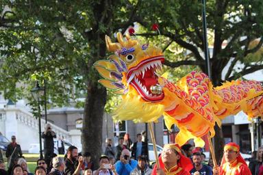 | Keywords: Dragon dance (simplified Chinese: 舞龙; traditional Chinese: 舞龍; pinyin: wǔ lóng) is a form of traditional dance and performance in Chinese culture. Like the lion dance it is most often seen in festive celebrations. The dance is performed by a team of dancers who manipulate a long flexible figure of a dragon using poles positioned at regular intervals along the length of the dragon. The dance team mimics the supposed movements of this river spirit in a sinuous, undulating manner. The dragon dance is often performed during Chinese New Year. Chinese dragons are a symbol of China, and they are believed to bring good luck to people, therefore the longer the dragon in the dance, the more luck it will bring to the community.[1] The dragons are believed to possess qualities that include great power, dignity, fertility, wisdom and auspiciousness. The appearance of a dragon is both frightening and bold but it has a benevolent disposition, and so eventually became an emblem to represent imperial authority. The movements in a performance traditionally symbolize historical roles of dragons demonstrating power and dignity. en.wikipedia.org/wiki/Dragon_dance Dragon dance (simplified Chinese: 舞龙; traditional Chinese: 舞龍; pinyin: wǔ lóng) is a form of traditional dance and performance in Chinese culture. Like the lion dance it is most often seen in festive celebrations. The dance is performed by a team of dancers who manipulate a long flexible figure of a dragon using poles positioned at regular intervals along the length of the dragon. The dance team mimics the supposed movements of this river spirit in a sinuous, undulating manner. The dragon dance is often performed during Chinese New Year. Chinese dragons are a symbol of China, and they are believed to bring good luck to people, therefore the longer the dragon in the dance, the more luck it will bring to the community.[1] The dragons are believed to possess qualities that include great power, dignity, fertility, wisdom and auspiciousness. The appearance of a dragon is both frightening and bold but it has a benevolent disposition, and so eventually became an emblem to represent imperial authority. The movements in a performance traditionally symbolize historical roles of dragons demonstrating power and dignity. en.wikipedia.org/wiki/Dragon_dance |