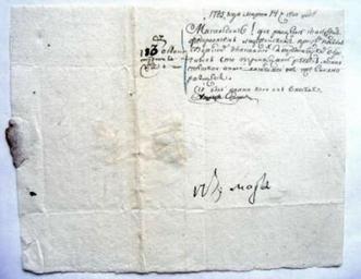 | Keywords: Ліст Суворава А. В..jpg be узей Коб ынскі ваенна-гіста ычны музей імя А В Суво ава Тып пісьмовыя к ыніцы Від укапісы П адметнае імя ліст Аўта ы Суво аў А В ; атэ ыялы папе а; су гуч; Тэхналогіі ства эння укапіс; Дата ства эння 1785/03/14 есца ства эння Расійская Імпе ыя Паме ы 22 2 х 16 3 см 1785-03-14 http //dkmf by/detail-author-item html author_item_id 75587 Alexander Suvorov Custom license marker 2013 04 07 PD-old-100 Uploaded with UploadWizard Suvorov Museum Kobrin Alexander Suvorov 18th-century works in Belarus Letters written messages |