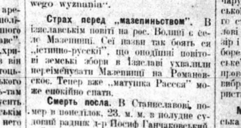 | Keywords: Страх перед "мазепиньством".jpg Ст ах пе ед мазепиньством // «Свобода» 1913 ч 5 Замітка в газеті п о з осійщення назви села азепинці Ізяславського повіту й пе ейменування на шану осійської імпе ато ської одини Романових 1913 «Свобода» 1913 ч 5 author PD-old Original upload log File was transfered from Ukrainian Wikipedia using UWCTransferBot v 0 2 based on Chris G's http //toolserver org/~chris/highlight php d chris/classes/ f botclasses php botclasses framework uk wikipedia D0 A1 D1 82 D1 80 D0 B0 D1 85+ D0 BF D0 B5 D1 80 D0 B5 D0 B4+ 22 D0 BC D0 B0 D0 B7 D0 B5 D0 BF D0 B8 D0 BD D1 8C D1 81 D1 82 D0 B2 D0 BE D0 BC 22 jpg 2013-04-03 11 15 Bulka UA 704×374×8 45971 bytes <nowiki> Зоб аження азва Ст ах пе ед мазепиньством // «Свобода» 1913 ч 5 Опис Замітка в газеті Авто евідомий Дже ело «Свобода» 1913 ч 5 Час </nowiki> Russification Krasyliv Raion |