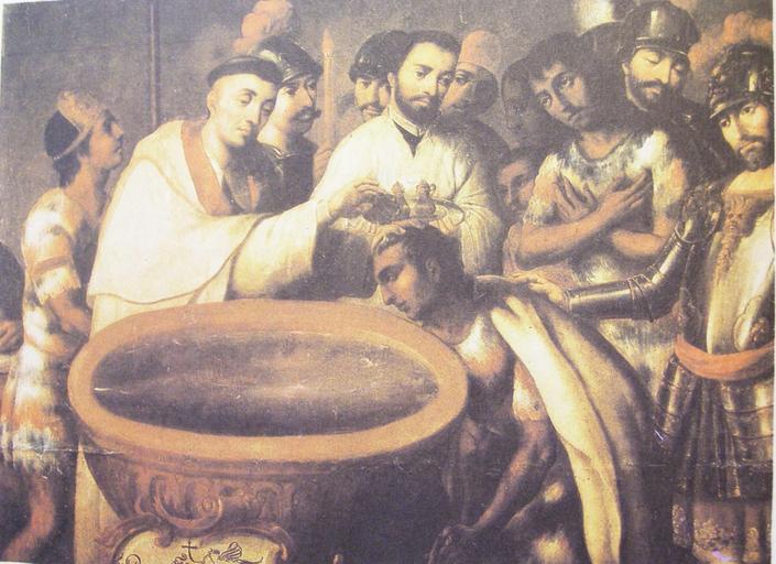 Keywords: Крещение ацтеков.JPG ru К ещение ацтеков в ексике Ка тина неизвестного художника XVI или XVII века Галич Исто ия доколумбовых цивилизаций / Пе Г Г Е шовой и Гу вица ысль 1990 С 22 author PD-art-100 Uploaded with UploadWizard Hernán Cortés