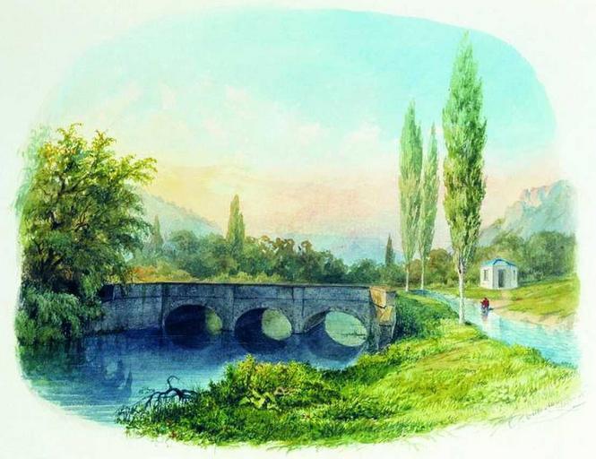 Keywords: Лагорио Чоргуньский мост-акведук.jpg ru Лаго ио Чо гуньский мост-акведук 1850 год 35 на 48 см Бумага аква ель en Lagorio Chorgunskaya bridge-aqueduct 1850 year 35 by 48 cm Watercolour on paper 1850 http //www sevastopol ws/Forums/ file viewtopic t 4382 start 0 Лаго ио PD-Art Uploaded with UploadWizard Chorgun |