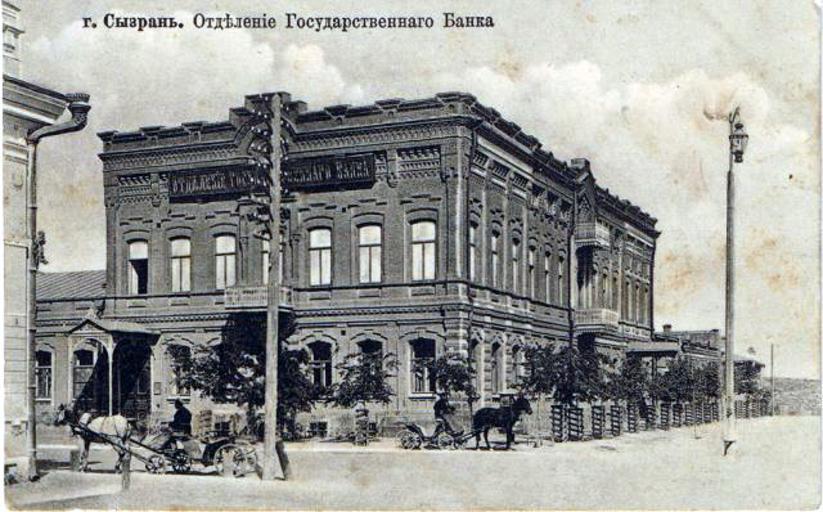| Keywords: Отделение Государственного Банка.jpg http //old syzran ru/html/15 html Отделение Госуда ственного Банка Пост оено в 1870-е годы Ул Советсткая 27 before 1920 http //old syzran ru/photo/16 jpg author PD-Old-70 Old photos of Syzran Files uploaded by ShinePhantom from various sources |