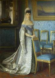 | Keywords: Визель Э.О. Вдовствующая императрица Мария Федоровна.JPG Artwork en Maria Feodorovna Dagmar of Denmark ru По т ет импе ат ицы а ии Федо овны жены импе ато а Александ а III <br /> инв ЦХ-2192-III холст масло; слева внизу подпись Э Визель 1905 До 1941 г по т ет находился в коллекции Гатчинского дво ца с 1956 г в соб ании Павловского дво ца 1905 Oil on canvas Pavlovsk palace source other versions PD-old-100 Emil Wiesel Paintings in the Pavlovsk Palace Maria Fyodorovna Dagmar of Denmark in portraits 1905 1900s oil on canvas paintings in Russia Portrait 1905 oil on canvas paintings Portrait 1905 portrait paintings F 20th-century oil portraits of standing women at full length 1905 20th-century portrait paintings in interiors 1905 20th-century portrait paintings in Russia 1905 Chairs in portrait paintings 1905 Females with pearl necklaces in art Painted portraits in female court uniforms and dress of Russia 1905 Portrait paintings of women wearing tiaras diadems 1905 Portraits with paintings Uploaded with UploadWizard |