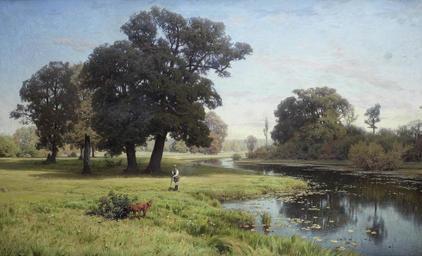 | Keywords: Владимир Д. Орловский - Река Гнилица (1885).jpg Artwork Creator Volodymyr Orlovsky 1885 oil canvas cm 95 155 accession number object history Listed in the Album of Russian painting Paintings by V D Orlovsky Saint-Petersburg 1888 as being in the collection of Mr Kuznetsov of Moscow very possibly Alexander Gregorevich Kuznetsov Archival material states that the offered lot was in the present European corporate collection by 1934 credit line exhibition history В О ловскій 85 ~ lower left signature and date http //www bonhams com/auctions/20029/lot/24/ Bonhams London 2012 11 28 lot 24 PD-old-auto-1923 1914 DEFAULTSORT Orlovsky Volodymyr Volodymyr Orlovsky Landscape paintings from Russia 1885 paintings from Russia Images from Bonhams |