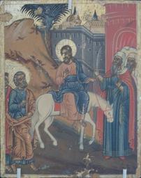 | Keywords: Абраз "Уваход у Ерусалім".JPG be Аб аз Уваход у Е усалім З цыклу Сашэсце ў пекла з 12-цю святамі Расія XIX ст Д эва тэмпе а 19th-century own photo author Custom license marker 2013 12 03 PD-Art Uploaded with UploadWizard Icons of the triumphal entry into Jerusalem Descent into Hell with 12 holidays cycle National museum of history and culture of Belarus |