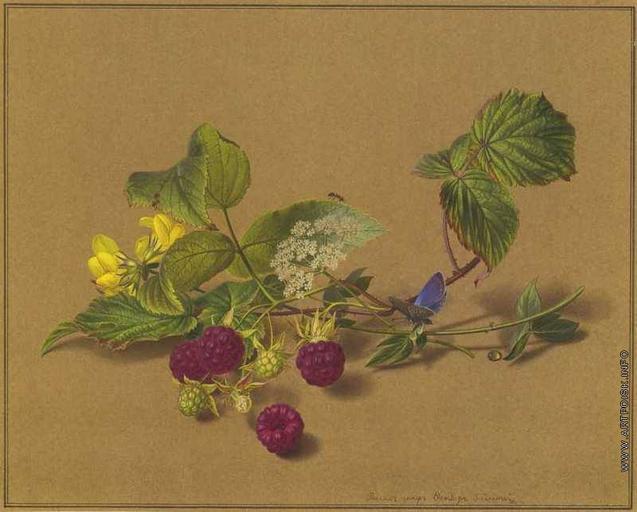 | Keywords: Ветка малины, бабочка и муравей.jpg be Галінка маліны матылёк і му аш Папе а аква эль ru Ветка малины бабочка и му авей Бумага аква ель before 1873 http //www artpoisk info/artist/tolstoy_fedor_petrovich_1783/vetka_maliny_babochka_i_muravey Fyodor Petrovich Tolstoy Custom license marker 2014 01 03 PD-Art Uploaded with UploadWizard Still-life drawings by Fedor Tolstoy Raspberries in art Ants in art Butterflies in art | ||||