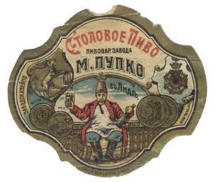 | Keywords: Этыкетка піваварнага завода М.Пупко ў Лідзе.jpg be Этыкетка півава нага завода Пупко ў Лідзе Канец ХІХ пачатак ХХ ст http //histmuseum by/be/new_page_5_3_15999/ - PD-Art Uploaded with UploadWizard Beers of Belarus Food labels National Historical Museum of Belarus |