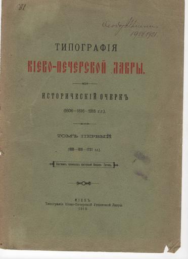 | Keywords: Титов Ф.И. Типография Киево-Печерской Лавры, исторический очерк. Том 1. (1918) — Титульный лист.jpg ru Титов Ф И Типог афия Киево-Пече ской Лав ы исто ический оче к Том 1 1918 Титульный лист 1918 http //onestreet kiev ua/2009/06/24/titov-printing-house-kiev-pechersk-lavra/ Титов В И + Типог афия Киево-Пече ской Успенской лав ы Custom license marker 2014 01 16 PD-old-auto-1923 1935 Uploaded with UploadWizard Literary works by Feodor Titov Books from Russia 1918 Title pages from Russia Title pages uploaded by Steven Pavlov from various sources |