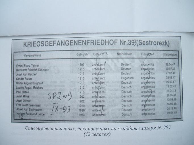 Keywords: Список немецких солдат похороненных на кладбище в Сестрорецке СПб.JPG ru Список немецких солдат из лаге я военнопленных похо оненных на Сет о ецком кладбище СПб фотог афия собственной аботы Пёт Иванов 2010 Sestroretsk