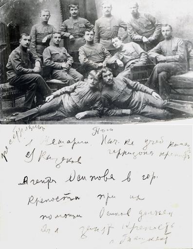 | Keywords: Расстрелянные командиры Ташкентской крепости с оборотом 1919 год.jpg en Commanders of the Tashkent fortress 1918 Assistant to the chief of educational team of garrison of fortress Shesharin Kazakov etc Shesharin Kazakov - K Osipov's shot agents in fortresses by means of which Osipov had to occupy fortress in Tashkent in January 1919 ru Команди ы Ташкентской к епости 1918 год Помощник начальника учебной команды га низона к епости Шеша ин Казаков и д Шеша ин Казаков - асст елянные агенты К Осипова в к епости п и помощи кото ых Осипов должен был занять к епость в Ташкенте в янва е 1919 года Из личной коллекции фотог афий author 1919 Tashkent in the 20th century Files by Just PD-old |