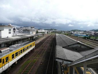 Keywords: 長門市駅萩方面.JPG Nagatoshi Station facing toward Hagi and Senzaki 長 市駅 萩 仙崎方 Own ペ 家音 2009-07-30 Nagatoshi Station