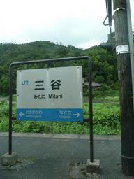 Keywords: 三谷駅看板.jpg Mitani Station Yamaguchi sign 三谷駅の駅標 Own ペ 家音 2009-07-30 Train station signs in Yamaguchi prefecture Stations of Yamaguchi Line Train stations in Yamaguchi prefecture Yamaguchi Yamaguchi