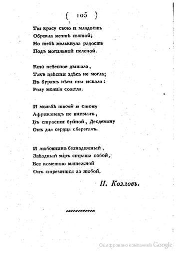 | Keywords: Пушкин. Я вас любил. Публикация в альманахе Северные цветы 1830.png ru И Козлов Публикация в альманахе Севе ные цветы 1830 1830 http //books google ru/books id zHJLAAAAMAAJ pg RA1-PA102 redir_esc y v onepage q f false И Козлов other versions PD-old-70-1923 Uploaded with UploadWizard Pushkin Uncategorized 2015 May 26 |