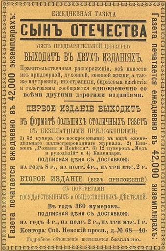 | View Original: | Реклама_газеты_Сын_отечества,_1894.jpg (1988x3000) | |||