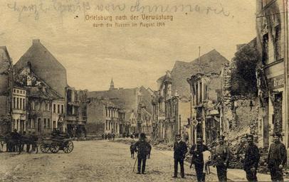 | Keywords: Разрушения в Ортельсбурге (Щитно) (август 2014 г.).jpg de Ortelsburg nach der Verwüstung durch die Russen im August 1914 ru О тельсбу г Щитно в августе 1914 года адпись на фотог афии Ortelsburg nach der Verwüstung durch die Russen im August 1914 - Раз ушения п оизведённые в О тельсбу ге усскими в августе 1914 Ге манская отк ытка в емён Пе вой и овой войны Verlag Cohn Ortelsburg; не дати ована Авто фотог афии не обозначен 1914 PD-old Old military postcards of Germany | ||||
