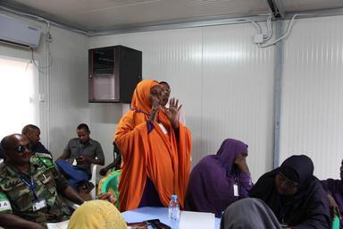 | Keywords: indoor room AMISOM Gender Unit headed by AMISOM Women and Child Protection Officer Kaoutar Kaddouri and AMISOM Human Rights and Gender unit officer Rasha Elamin visited Baidoa today. The team met with Human Rights groups, women group representatives, AMISOM CIMIC officer, representatives from the local administration and discussed with them the needs and priorities of women and child protection, human rights issues, protection of the unprivileged members of the society, protection from rape and reportage of rape cases among others. AMISOM Photo AMISOM Gender Unit headed by AMISOM Women and Child Protection Officer Kaoutar Kaddouri and AMISOM Human Rights and Gender unit officer Rasha Elamin visited Baidoa today. The team met with Human Rights groups, women group representatives, AMISOM CIMIC officer, representatives from the local administration and discussed with them the needs and priorities of women and child protection, human rights issues, protection of the unprivileged members of the society, protection from rape and reportage of rape cases among others. AMISOM Photo |