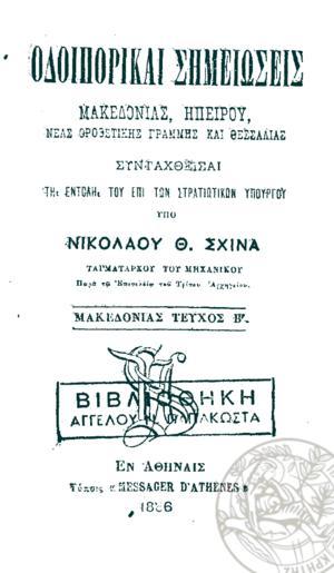 | Keywords: Οδοιπορικαί σημειώσεις Μακεδονίας, Ηπείρου, νέας οροθετικής γραμμής και Θεσσαλίας, εξώφυλλο.GIF el Το εξώφυλλο του βιβλίου του ταγματάρχη μηχανικού ικολάου Θ Σχινά Oδοι ορικαί σημειώσεις ακεδονίας Η είρου νέας οροθετικής γραμμής και Θεσσαλίας 1886 en Τhe cover of Major Nikolaos Th Schinas' book Travelling notes on Macedonia Epirus the new borderline and Thessaly 1886 1886 Travelling notes on Macedonia Epirus the new borderline and Thessaly Nikolaos Th Schinas other versions PD-old-70-1923 Uploaded with UploadWizard Uncategorized 2015 July 8 |
