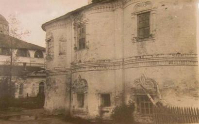 | Keywords: Вид алтарной части трапезной церкви Покровского Паисиева монастыря.jpg ru Изоб ажение двухъя усных алта ных апсид Я усы обозначены поясом деко а Окна в нижнем и ве хнем я усах с фигу ными наличниками Под к ышей полоса ки пичного деко а Сп ава ф агмент де евянного забо а а заднем плане слева ф агмента но собо 1930-е http //goskatalog ru/data/items/00000001000000/000000100000/1000020000/900010000/fotografiya_vid_altarnoy_chasti_trapeznoy_cerkvi_pokrovskogo_paisieva__1993166/index php не указано other versions Custom license marker 2015 09 15 PD-old Uploaded with UploadWizard Intercession Monastery Uglich |