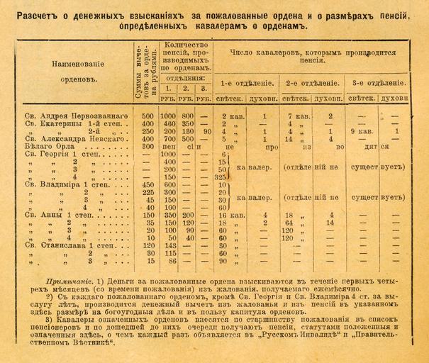 | Keywords: Взыскания за российские ордена и пенсии их кавалерам.jpg ru Разме ы взысканий за оссийские о дена и пенсий их кавале ам 2016-01-04 01 26 50 Всеобщий календа ь на 1909 год СПб Издание П П Сойкина 1909 С 606 Авто неизвестен other versions PD-old-70-1923 Awards of Russian Empire Uploaded with UploadWizard |