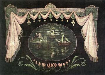 | Keywords: Дыван Тэатральны.jpg be 1950-я гг атэ 'ял і тэхніка палатно алей Паме ы 141 х 207 Паходжанне Глыбоцкі -н Віцебская вобл есцазнаходжанне Гісто ыка-культу ны музей-запаведнік Заслаўе en Tapestry Theatre The motif was a painting by Jazep Drazdovič Belarus 1950-54 http //spadczyna com/art/b_d_drazdovich htm Jazep Drazdovič Custom license marker 2012 12 11 PD-Belarus Carpets by Jazep Drazdovič Uploaded with UploadWizard Sailing ships in paintings | ||||