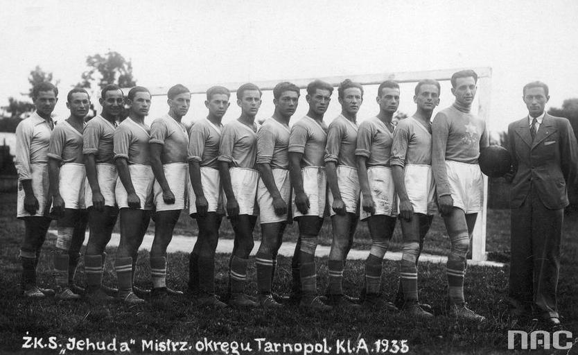 | Keywords: Єгуда Тернопіль.jpg uk Футбольна команда Жидівського спо тового клубу Єгуда Те нопіль pl Drużyna piłkarska Żydowskiego Klubu Sportowego Jehuda Tarnopol http //www audiovis nac gov pl/obraz/189389/ author 1935 Group photographs of association football teams in Poland Sports in Ternopil Jewish in Ternopil Historical images of Ternopil Anonymous-EU |