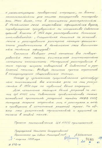 | Keywords: Записка председателя КГБ при СМ СССР А.Н. Шелепина Н.С. Хрущеву 2.jpg A memo from head of KGB Alexander Shelepin to Nikita Khrushchev about the liquidation of all case records of Polish nationals executed in 1940 with an attached project of a Presidium resolution Handwritten Записка п едседателя КГБ п и С СССР А Шелепина С Х ущеву о ликвидации всех учетных дел на польских г аждан асст елянных в 1940 г с п иложением п оекта постановления П езидиума ЦК КПСС Рукопись Russian State Archive of Socio-Political History http //rusarchives ru/publication/katyn/05 shtml РГАСПИ Ф 17 Оп 166 Д 621 Л 138 1959-03-03 Шелепин Александ иколаевич PD-RU-exempt <gallery>File 1959-03-03 shelep2 png</gallery> Katyń Massacre 28 April 2010 Documents |