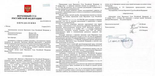 | Keywords: ОПРЕДЕЛЕНИЕ ВЕРХОВНОГО СУДА РФ № АПЛ 1492 от 8.04.2014.jpeg ru Оп еделение апелляционной коллегии Ве ховного Суда России АПЛ 1492 от 8 ап еля 2014 по жалобе на Решение Ве ховного Суда РФ О неконституционном оспуске СССР en The response of the appeal Board of the Supreme Court of Russia on the complaint to the Supreme Court decision On unconstitutional dissolution of the Soviet Union April 8 2014 2014-04-08 own Dgeise Official documents 200px PD-RU-exempt cc-by-sa-4 0 Unconstitutional dissolution of the Soviet Union |