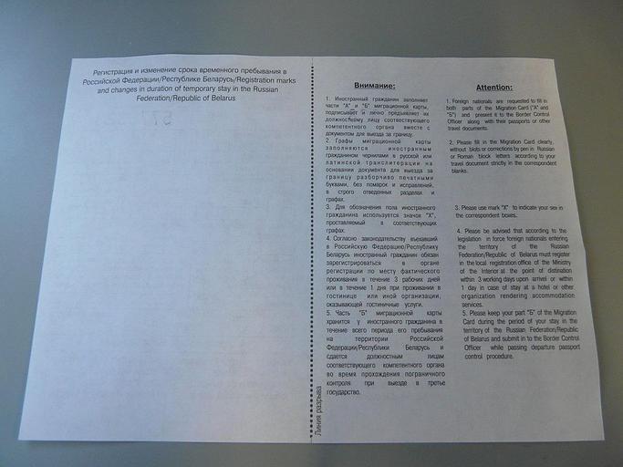 Keywords: Миграционная карта. Обратная сторона.JPG ru иг ационная ка та en Migration card 2008-11-02 own Fenikals other versions PD-RU-exempt Uploaded with UploadWizard Uncategorized 2015 December 26