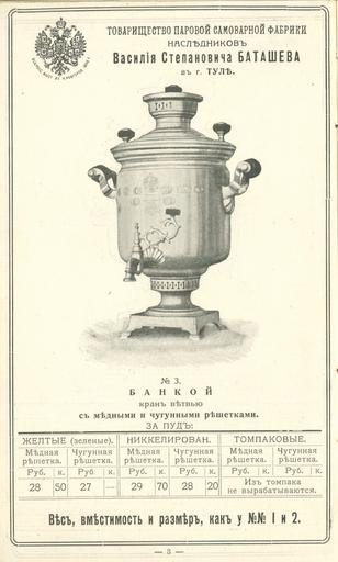 Keywords: Прейскурант самоварной фабрики В.С Баташева 3.jpg П ейску ант самова ной фаб ики В С Баташева < 1917 https //fotki yandex ru/users/humus777/album/379238/ not specified PD-RusEmpire Prices of Batashev's samovar factory