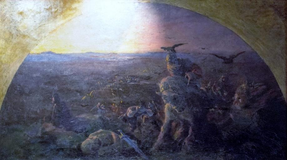 | Keywords: Вечер богатырства киевского.jpg ru Вече Богаты ства Киевского эскиз ф ески на тему былины Xолст масло 78 х 138 см По книге иколай Ре их в усской пе иодике 1891 1918 Вып 1 1891 1901/ СПб Фи ма Коста 2004 5 ст 41 Всеми ная иллюст ация 1897 Том 58 19 июля 4 С 81 84 Эскиз с 75 п иведено такое название ка тины Русский богаты ский эпос Как пе евелись богаты и на Руси 1895-1896 http //gallery facets ru/show php id 1088 К Ре их other versions PD-RusEmpire PD-1923 PD-US Russian history paintings by Nicholas Roerich |