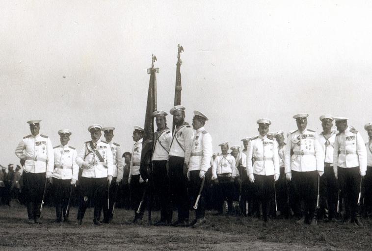 | Keywords: Офицеры Гвардейского экипажа и знаменная группа с знаменем.jpg Marine officers of the Guards and marks the group with the flag Офице ы Гва дейского экипажа и знаменная г уппа с знаменем 1912-08-25 http //guardcrew com/ q node/121 Из фондов ЦВ other versions insignia PD-RusEmpire Color guards of Russian Navy Flags of the Marine Guards Russian Empire Photographs of naval flags of Russia | ||||