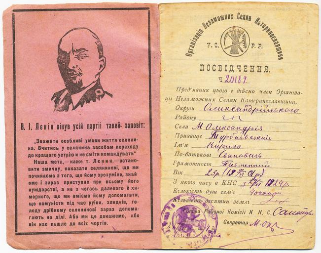 | Keywords: Членський квиток організації незаможних селян 02.jpg ru Членский билет о ганизации малоимущих к естьян Екате инославщины Ту баевского Ки илла Ивановича полученный в 1924 году в го оде Александ ии uk Членський квиток о ганізації незаможних селян Кате инославщини Ту баєвського Ки ила Івановича от иманий в 1924 оці в місті Олександ ії en Membership card of the organization of the poor peasants Katerinoslavshchina Oleksandriia district 1924 es Tarjeta de miembro de la organización de los campesinos pobres 1924 eo Karton de la organizo de la malriĉaj kamparanoj 1924 id Kartu keanggotaan organisasi petani miskin distrik Oleksandriia Katerinoslavshchina 1924 1924 <small><sub style color blue >chelo</sub></small>Vechek / <small><sup style color green >talk</sup></small> с о игинала из собственного а хива <small><sub style color blue >chelo</sub></small>Vechek / <small><sup style color green >talk</sup></small> from original in own archive <small><sub style color blue >chelo</sub></small>Vechek / <small><sup style color green >talk</sup></small> de l'original en propre archive ru е указывается en Not credited other versions 48 69 33 10524 Custom license marker 2016 03 12 PD-Russia-2008 PD-RU-exempt documents PD-trivial 1924 documents Documents of Committees of Poor Peasants History of Oleksandria Scanned with Canon Pixma MP970 |