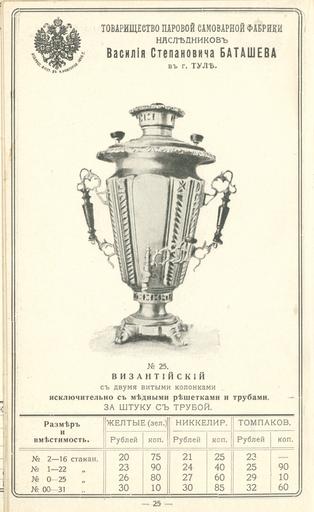 Keywords: Прейскурант самоварной фабрики В.С Баташева 33.jpg П ейску ант самова ной фаб ики В С Баташева < 1917 https //fotki yandex ru/users/humus777/album/379238/ not specified PD-RusEmpire Prices of Batashev's samovar factory