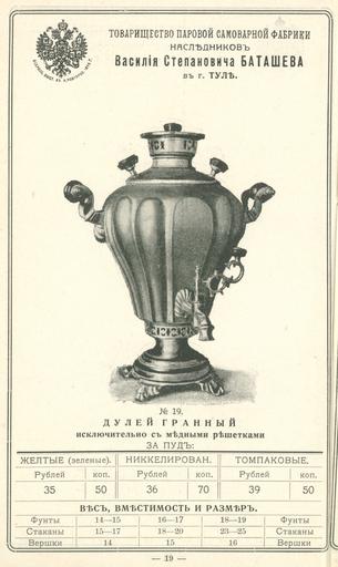 Keywords: Прейскурант самоварной фабрики В.С Баташева 9.jpg П ейску ант самова ной фаб ики В С Баташева < 1917 https //fotki yandex ru/users/humus777/album/379238/ not specified PD-RusEmpire Prices of Batashev's samovar factory