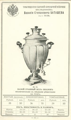 Keywords: Прейскурант самоварной фабрики В.С Баташева 29.jpg П ейску ант самова ной фаб ики В С Баташева < 1917 https //fotki yandex ru/users/humus777/album/379238/ not specified PD-RusEmpire Prices of Batashev's samovar factory