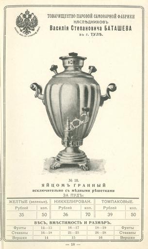 Keywords: Прейскурант самоварной фабрики В.С Баташева 32.jpg П ейску ант самова ной фаб ики В С Баташева < 1917 https //fotki yandex ru/users/humus777/album/379238/ not specified PD-RusEmpire Prices of Batashev's samovar factory