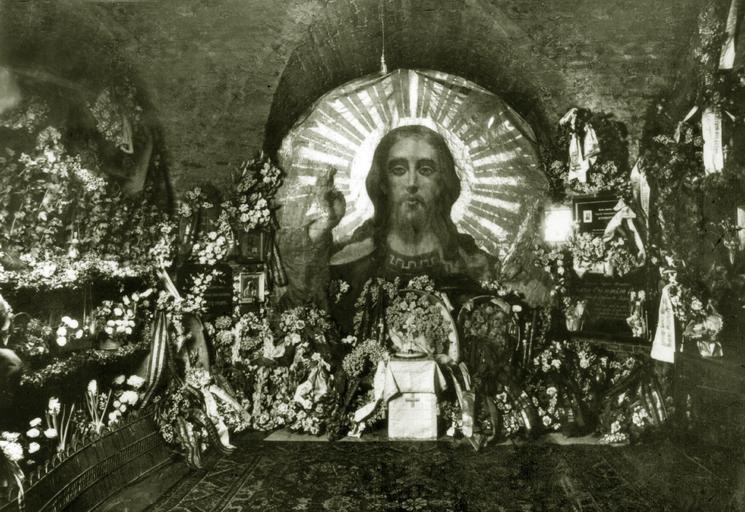 | Keywords: Склеп церкви св Мирония.jpg ru Склеп и ониевской це кви Лейб-гва дии Еге ского полка в Пете бу ге с захо онениями офице ов погибших на полях Пе вой ми овой войны http //poxoronka ru/poxoronka_new/index php/news/1220-news-sp-17512 Ка л Булла before 1918 г PD-old Saint Miron church Saint Petersburg |