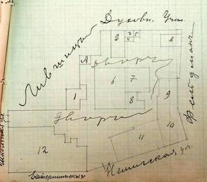 | Keywords: План Школьнага двара, Мінск, 1910.jpg be Агульны дво 6-ці малітоўных тава ыстваў 1 Школы Віленкінай 1 на плане 2 Ста ой Вялікай Сінагогі 6 8 на плане 3 Бесэ- ед эсэ 11 на плане 4 овай Сінагогі 7 на плане 5 Талмуд-То ы 9 10 на плане 6 Шабак ум 12 на плане 1 -- школа Віленкінай 6 8 -- т зв Халодная або Ста ая Вялікая Сінагога ; 7 -- п ыбудова да Халоднай сінагогі пад назвай овая Сінагога 9 10 школа Талмуд-То ы 11 -- школа Бесэ- ед эсэ на пе шым паве се таксама адзначана синагога 12 на агу вуліц Школьнай і Каця ынінскай далей - ямігскай -- будынак Ев ейского б атства Шабак умм дзе месцілася синагога об-ва Шабак умм а таксама т зв алая школа і некалькі лавак ru Общий дво 6-ти молитвенных об-в 1 Школы Виленкиной 1 на плане 2 Ста ой Большой Синагоги 6 8 на плане 3 Бессе- ед ессе 11 на плане 4 овой Синагоги 7 на плане 5 Талмуд-То ы 9 10 на плане 6 Шабак умм 12 на плане 1910 ГАБ 1-1-4825-а к 278; знайшоў адкапі аваў і адкаментаваў Дзяніс Лісейчыкаўhttps //www facebook com/photo php fbid 1053807974733901 set p 1053807974733901 type 3 theater author other versions PD-old-70-1923 Školnaja Street Minsk |