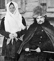 Keywords: Сергей Труфанов с женой Надеждой Перфильевой.jpg ru Се гей Т уфанов с женой адеждой Александ овной Пе фильевой с кото ой жил до азвода в 1932 г before 1922 http //sergey-v-fomin livejournal com/112903 html не указано other versions Custom license marker 2016 03 17 PD-old Iliodor Trufanov Male fur headgear Fur clothing of native people of Russia Fur fashion in 1922