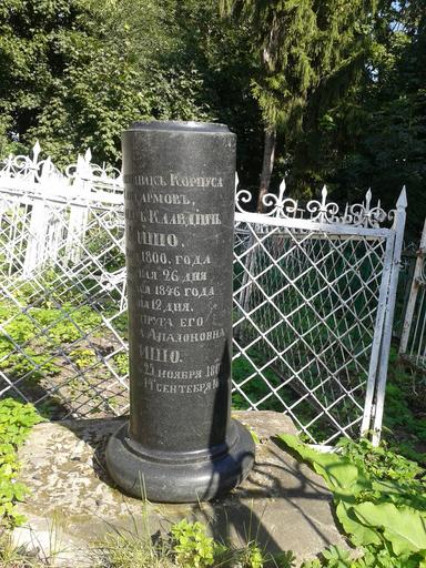 | Keywords: Могила подполковника корпуса жандармов А.К. Мишо и его жены В.А. Мишо 3.jpg ru Памятник колонна из чё ного базальта на могиле подполковника ко пуса жанда мов Александ а Клавдиевича ишо 1800-1846 и его суп уги Ва ва ы Аполлоновны ишо 1807-1848 ит офановское кладбище г Пенза Памятник находится ядом со зданием ит офановской це кви к югу от алта ной апсиды 2016-08-28 14 18 36 own AAA333 other versions cc-zero Saint Mitrofan Cemetery Penza | ||||