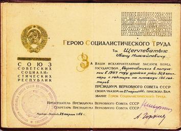 Keywords: Наградной лист Героя Соцтруда Щеглеватых И. М.jpg ru наг адной лист на п исвоение звания Ге ой Социалистического т уда 2010-04-17 09 29 50 own scanned Bya965 other versions PD-RU-exempt Documents of the Soviet Union