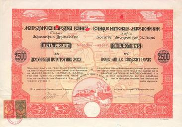 Keywords: Македонска народна банка акция за 2500 лева.jpg Акция на акедонската на одна банка scanned 1930 акедонска на одна банка PD-old Makedonska Narodna Banka Stock certificates of banks in Bulgaria Revenue stamps of Bulgaria Revenue stamps on documents Stefan Badzhov |