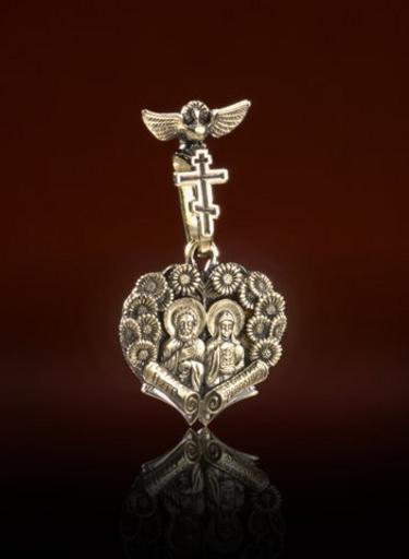 Keywords: Владимир Михайлов образ Петра и Февронии.jpg ru Подвеска с ликами святых Пет а и Фев онии own Natalyspb 08 07 2010 Silver jewellery Brown background Cross pendants Christian saints in art Orthodox crosses