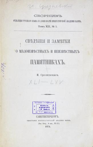 Keywords: Срезневський Свєдєнія о памятниках 1443.jpg Ізмаїл С езневський Свєдєнія и замєтки о малоизвєстных и неизвєстных памятниках Санкт-Пете бу г 1874 Титульний а куш З особистої бібліотеки І Ф анка 1874 Institution Shevchenko Institute of Literature Digital Collection PD-old-70-1923 1790 books from Germany Franko Personal Library Collections of books in libraries in Ukraine Shevchenko Institute of Literature Uploaded with VicuñaUploader |
