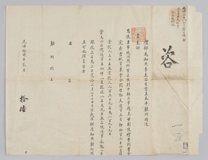 Keywords: 조선-청 외교문서(자문) 038.jpg ko 貢兼 恩使正使判中樞 事趙秉世副使禮曺判書金完 書將官掌令閔哲勳大 三員押物官24員得賞從人30名無賞從人239名馬199匹賞馬6匹 行 2 22日自京起程事를 移咨4 3日復命 2016-07-18 http //www nl go kr/nl/search/SearchDetail nl category_code ct service KOLIS vdkvgwkey 1130002 colltype DAN_OLD place_code_info 172 place_name_info EB 94 94 EC A7 80 ED 84 B8 EC 97 B4 EB 9E 8C EC 8B A4 manage_code MA shape_code B refLoc null category dan srchFlag Y h_kwd E5 8F A4 E6 9C 9D51- EB 8B A428-49 lic_yn N mat_code RB 국립중앙도 조선국왕 수급 청국예 급 other versions PD-Art Books from National Library of Korea Books from Korea 1888 in Relations of the Joseon Dynasty and the Qing Dynasty |