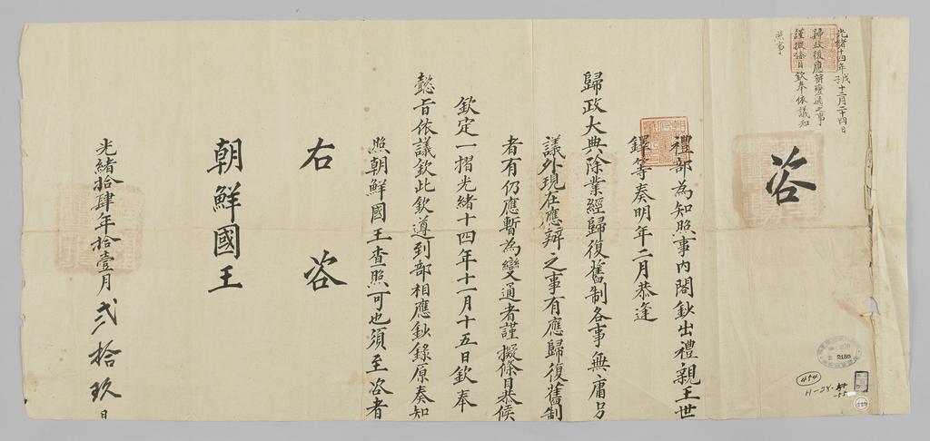 Keywords: 조선-청 외교문서(자문) 044.jpg ko 歸政後에 應辨變 之事를 謹擬 目欽奉 議知照事를 禮部 터 移咨12 24日 2016-07-18 http //www nl go kr/nl/search/SearchDetail nl category_code ct service KOLIS vdkvgwkey 1129965 colltype DAN_OLD place_code_info 172 place_name_info EB 94 94 EC A7 80 ED 84 B8 EC 97 B4 EB 9E 8C EC 8B A4 manage_code MA shape_code B refLoc null category srchFlag Y h_kwd E5 8F A4 E6 9C 9D51- EB 8B A428-55 lic_yn N mat_code RB 국립중앙도 조선국왕 수급 청국예 급 other versions PD-Art Books from National Library of Korea Books from Korea 1888 in Relations of the Joseon Dynasty and the Qing Dynasty |