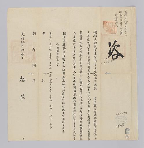 Keywords: 조선-청 외교문서(자문) 115.jpg 고종 20년 1883 11월 16 에 청국 예 에 조선국왕에게 보내 온 문 절강성에 호송되어 온 민 강도행 道行 등 11명 헌 재자 11월 22 에 북경에 돌아 는 편에 딸려 보낸다고 알리는 내용 다 민 11명 명단 적 있다 2016-07-18 http //www nl go kr/nl/search/SearchDetail nl category_code ct service KOLIS vdkvgwkey 1130165 colltype DAN_OLD place_code_info 172 place_name_info EB 94 94 EC A7 80 ED 84 B8 EC 97 B4 EB 9E 8C EC 8B A4 manage_code MA shape_code B refLoc null category srchFlag Y h_kwd E5 8F A4 E6 9C 9D51- EB 8B A428-173 lic_yn N mat_code RB 국립중앙도 조선국왕 청국예 other versions PD-Art Books from National Library of Korea Books from Korea 1883 in Relations of the Joseon Dynasty and the Qing Dynasty |